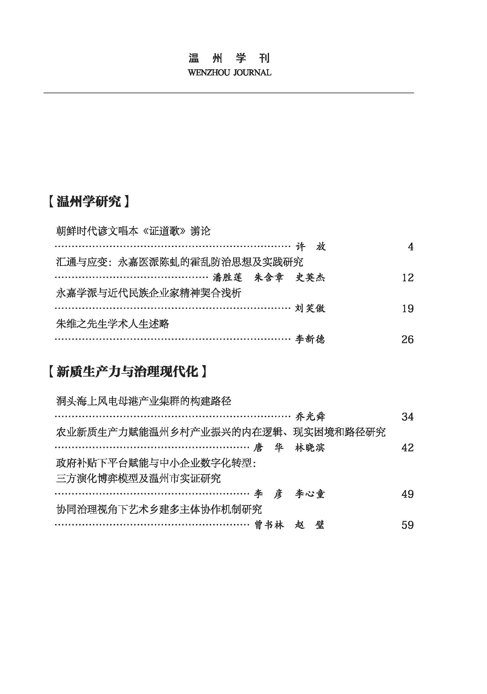 摘要:在我国民营经济代际传承与高质量发展交汇期,温商精神面临传承与创新的双重挑战。本研究基于“显性—隐性”精神二元框架分析发现,其传承存在结构性困境:显性层面,制度性传承机制缺位与政策供给精度不足;隐性层面,遭遇代际认知断裂、“身体记忆”稀释与数字转型思维滞后等挑战。为此,本文提出构建“制度化传递—情境化再生”协同体系,推动形成显隐互嵌的传承机制、搭建文化对话平台、完善精准政策生态、构筑创新与责任并重的演进系统,以期实现温商精神从代际交接向创新发展的范式跃迁,为民营经济高质量发展提供理论支撑与实践路径。